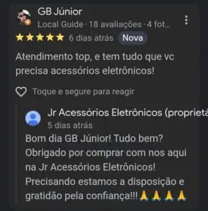 “Na JR Acessórios Eletrônicos, você encontra os melhores produtos em tecnologia e utilidades domésticas em Camboriú. Somos especializados em entregas rápidas (até 1 hora na região), atendimento personalizado via WhatsApp e variedade de marcas. Compre com segurança: aceitamos PIX, cartão e dinheiro, sem cobrança antecipada!”